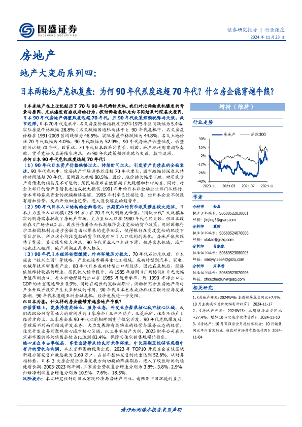【国盛证券】【20241123】地产大变局系列四:日本两轮地产危机复盘:为何90年代烈度远超70年代?什么房企能穿越牛熊?-25页