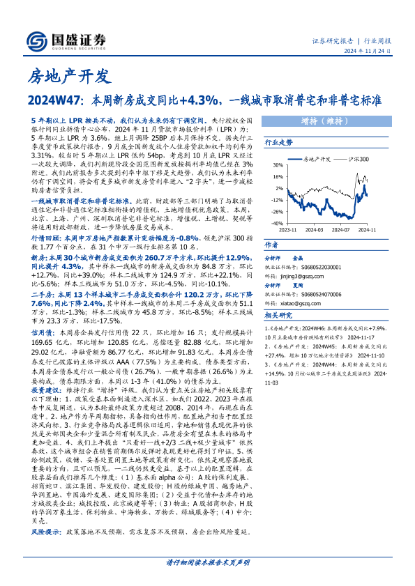 【国盛证券】【20241124】房地产开发2024W47:本周新房成交同比+4.3%,一线城市取消普宅和非普宅标准-14页
