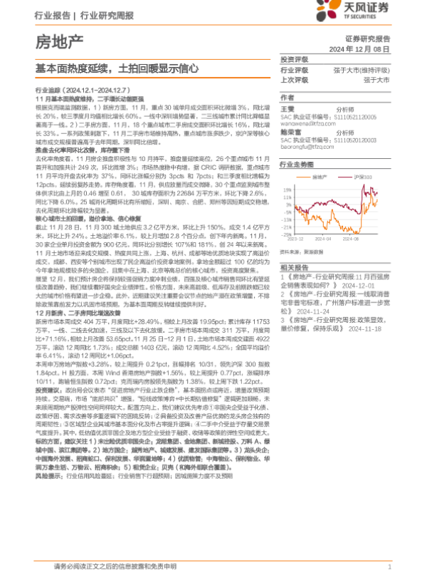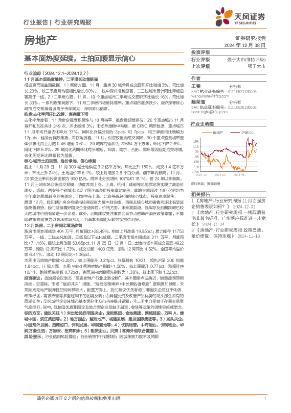 【天风证券】【20241208】房地产行业研究周报:基本面热度延续,土拍回暖显示信心-15页