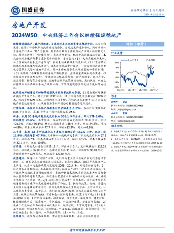 【国盛证券】【20241215】中央经济工作会议继续强调稳地产-17页