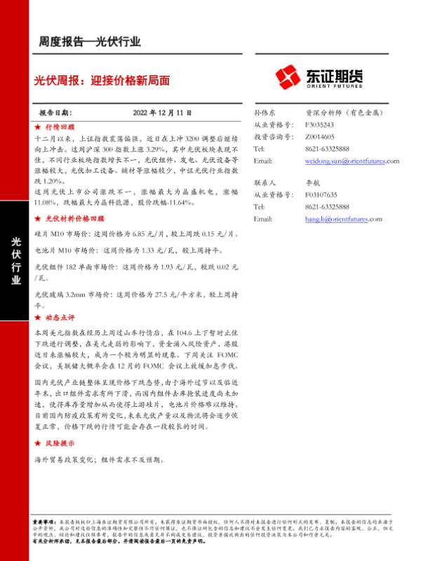 【东证期货】【20221211】光伏周报:迎接价格新局面-19页