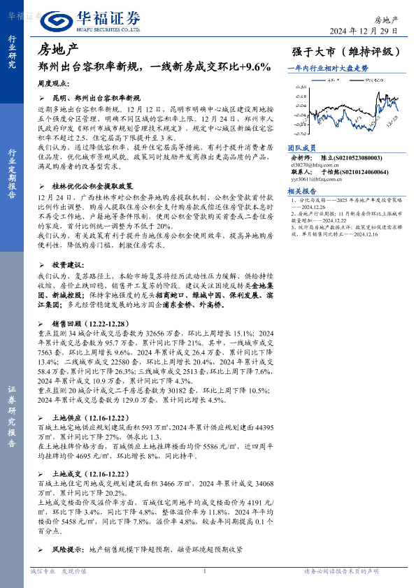 【华福证券】【20241229】郑州出台容积率新规,一线新房成交环比+9.6%-14页