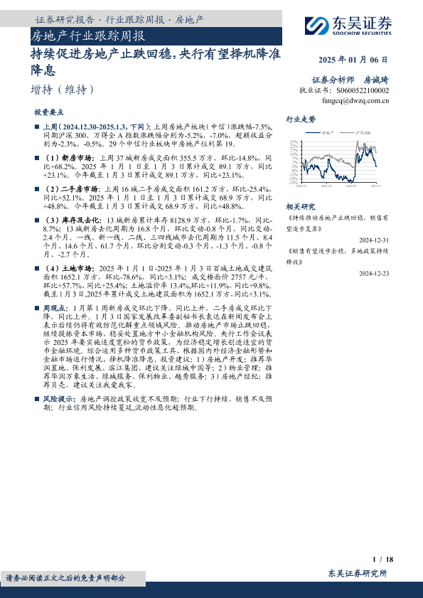 【东吴证券】【20250106】持续促进房地产止跌回稳,央行有望择机降准降息-18页