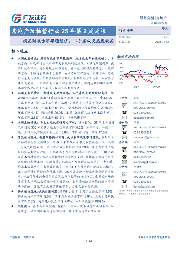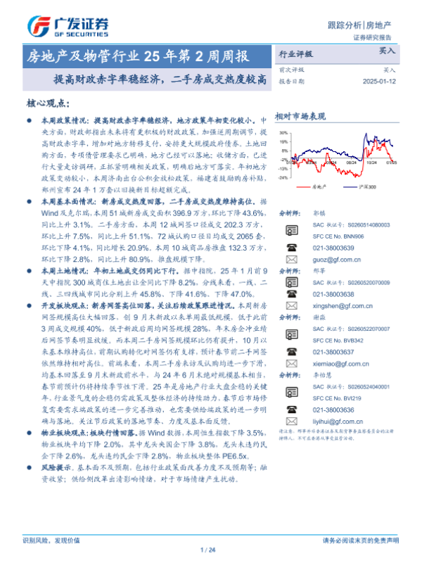 【广发证券】【20250112】房地产及物管行业25年第2周周报:提高财政赤字率稳经济,二手房成交热度较高-24页