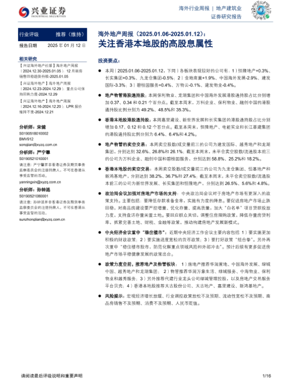 【兴业证券】【20250112】海外地产周报:关注香港本地股的高股息属性-16页