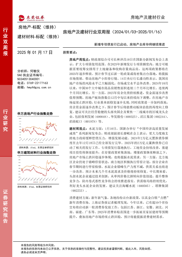 【东莞证券】【20250117】房地产及建材行业双周报:新增专项债发行已启动,房地产去库存将继续推进-14页