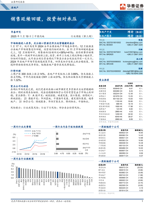 【华泰证券】【20250119】房地产行业周报(第三周):销售延续回暖,投资相对承压-12页