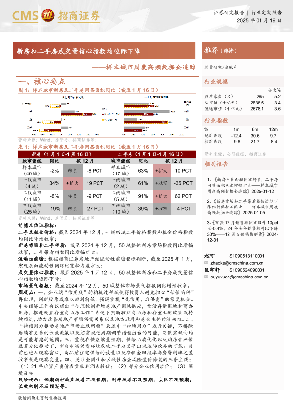 【海通证券】【20250119】样本城市周度高频数据全追踪:新房和二手房成交量信心指数均边际下降-12页