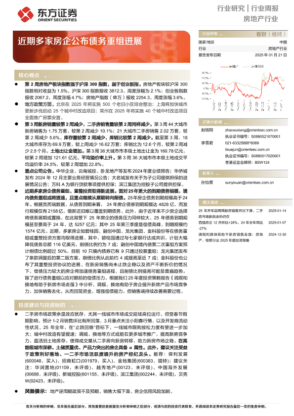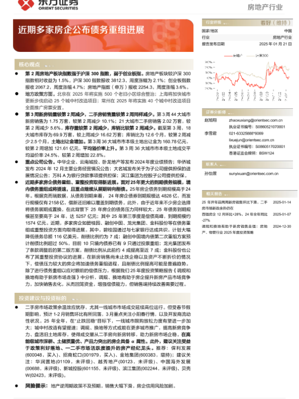 【东方证券】【20250121】房地产行业周报:近期多家房企公布债务重组进展-14页