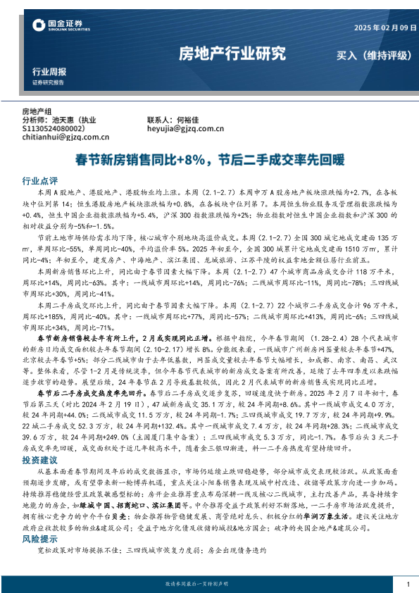 【国金证券】【20250209】房地产行业研究:春节新房销售同比+8%,节后二手成交率先回暖-18页