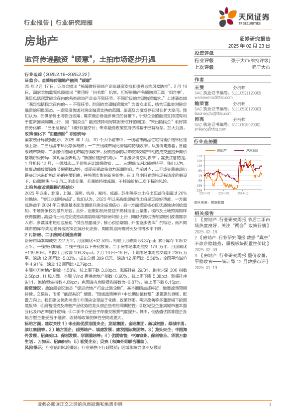 【天风证券】【20250223】房地产行业研究周报:监管传递融资‘暖意’,土拍市场逐步升温-14页
