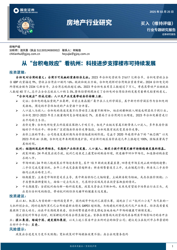 【国金证券】【20250225】从“台积电效应”看杭州:科技进步支撑楼市可持续发展-23页