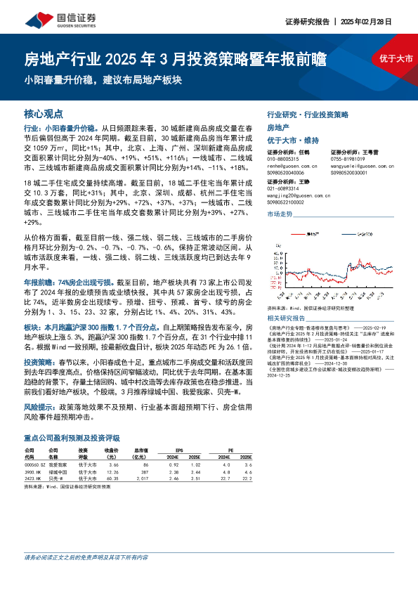 【国信证券】【20250228】房地产行业2025年3月投资策略暨年报前瞻:小阳春量升价稳,建议布局地产板块-11页