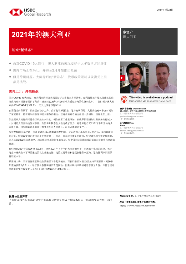 【HSBC】【20210122】亚太地区宏观策略之澳大利亚2021:上升到“新常态”-31页