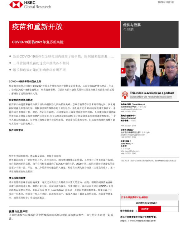 【HSBC】【202101】全球宏观策略之疫苗与重新开放:COVID19对2021年经济复苏的风险-23页