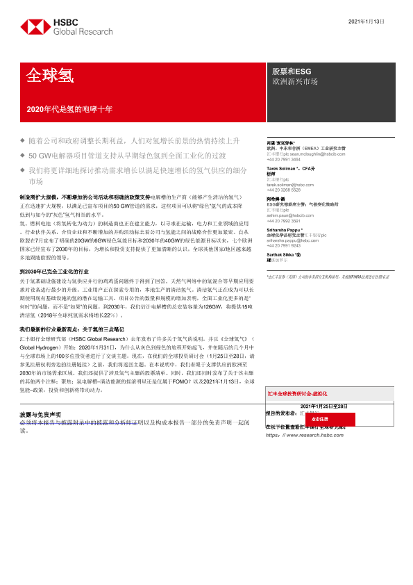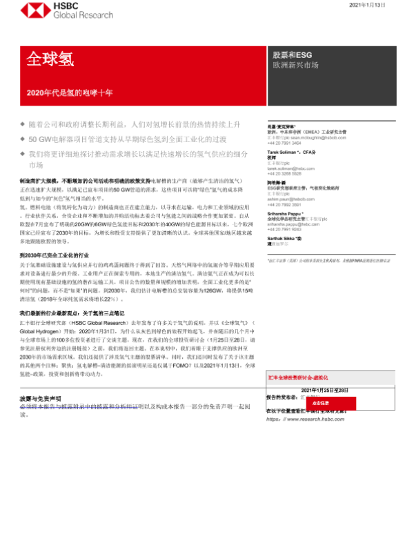 【HSBC】【202101】全球能源行业全球氢燃料:21世纪20年代是氢能源蓬勃发展的十年-22页