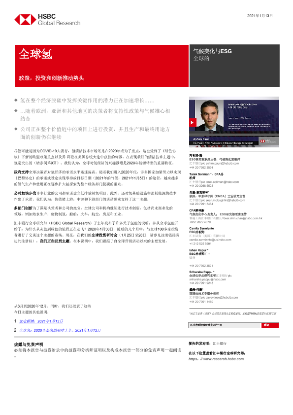 【HSBC】【202101】全球能源行业全球氢燃料:政策、投资和创新驱动动力-22页