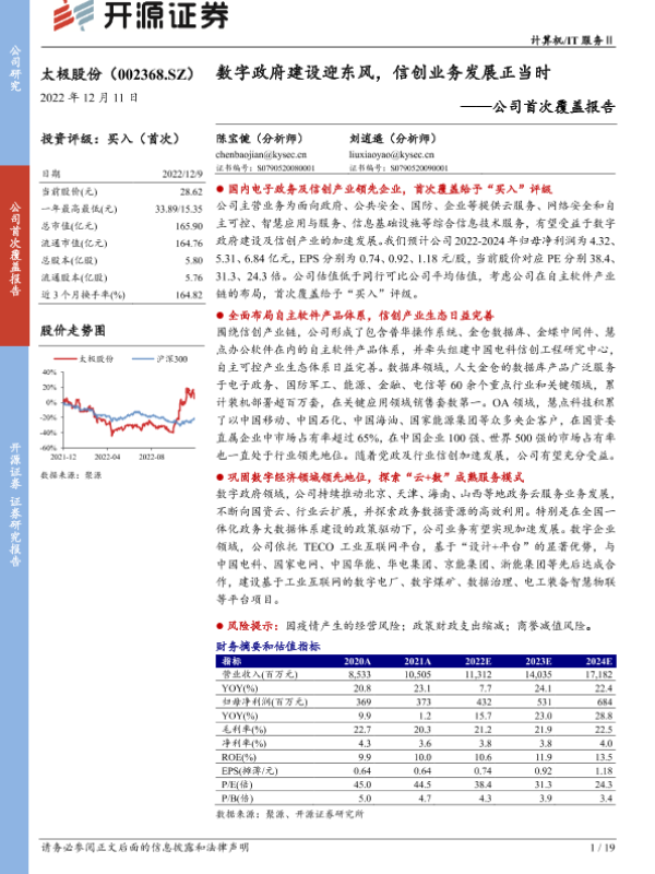 【开源证券】【20221211】公司首次覆盖报告:数字政府建设迎东风,信创业务发展正当时-19页