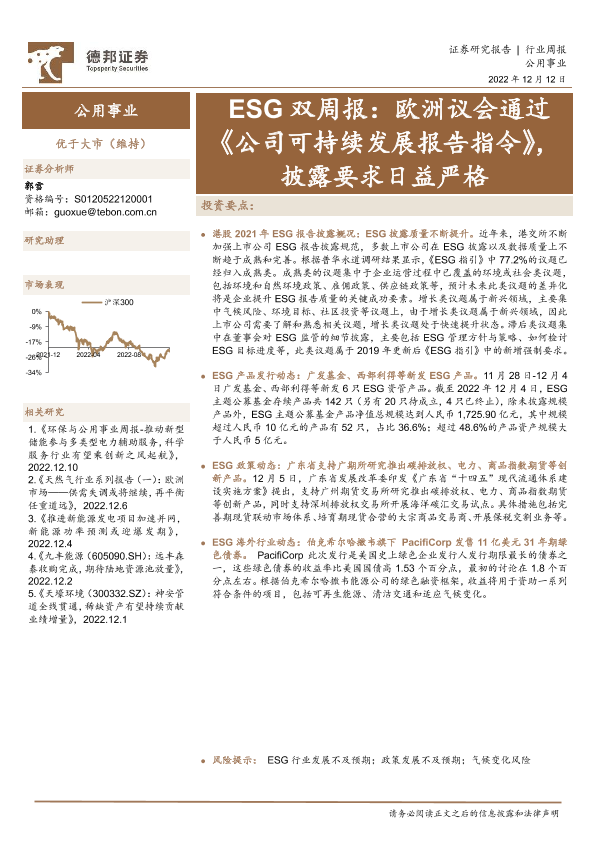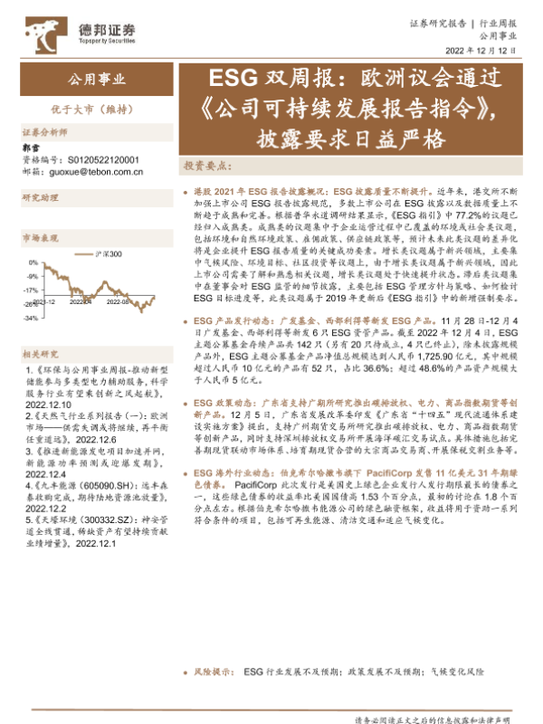 【德邦证券】【20221212】公用事业ESG双周报:欧洲议会通过《公司可持续发展报告指令》,披露要求日益严格-15页