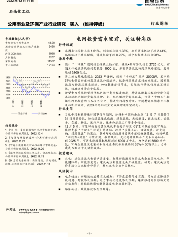 【国金证券】【20221211】公用事业及环保产业行业研究周报:电网投资需求空前,关注特高压-17页