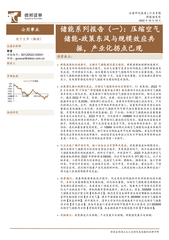 【德邦证券】【20221215】公用事业储能系列报告(一):压缩空气储能-政策东风与规模效应共振,产业化拐点已现-27页
