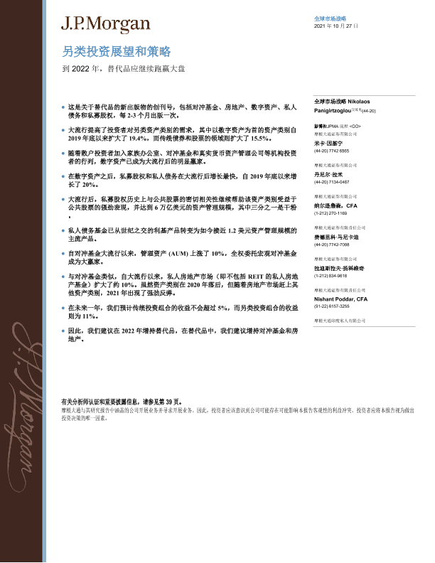 【J.P. Morgan】【20211027】另类投资展望和策略-43页