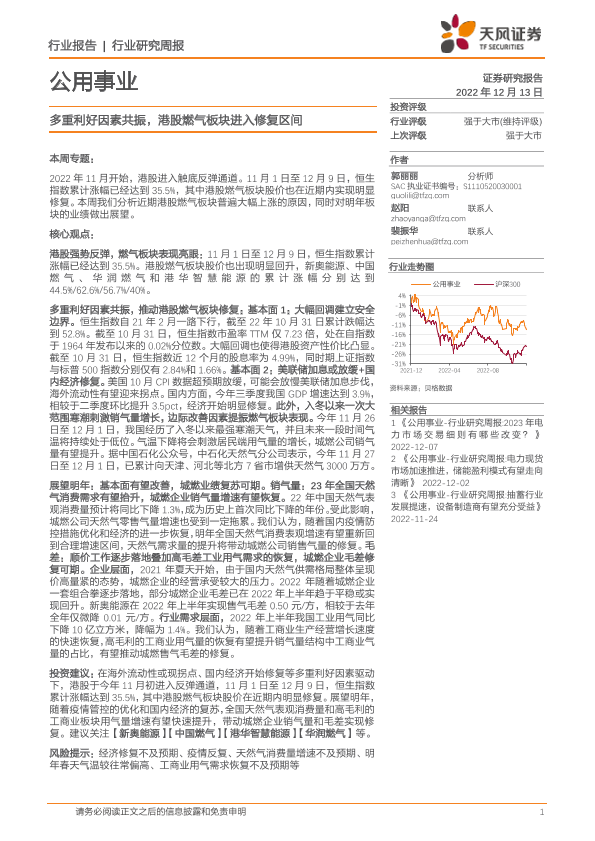 【天风证券】【20221213】公用事业行业研究周报:多重利好因素共振,港股燃气板块进入修复区间-14页