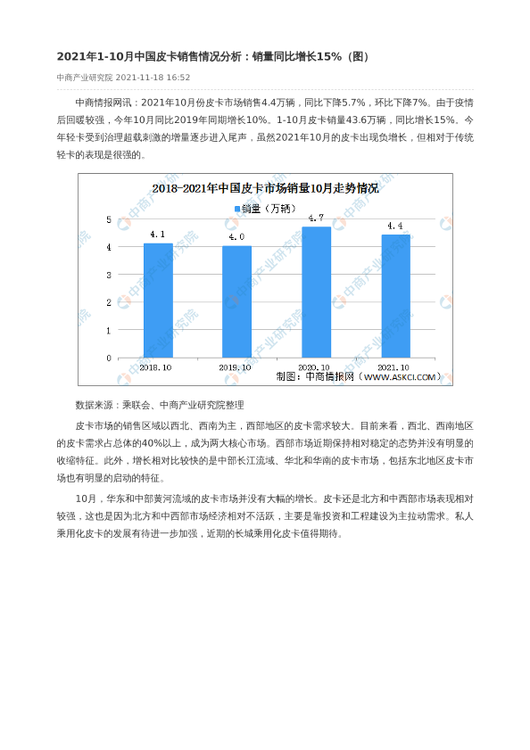 【中商产业研究院】【20211118】2021年1-10月中国皮卡销售情况分析-2页