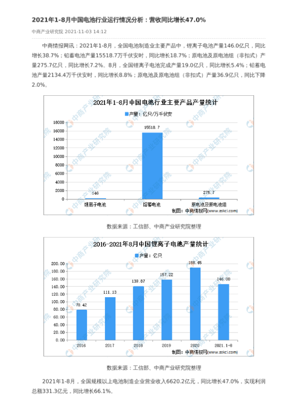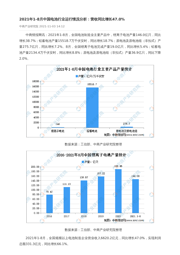 【中商产业研究院】【20211103】2021年1-8月中国电池行业运行情况分析-2页