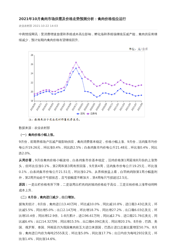 【中商产业研究院】【202110】2021年10月禽肉市场供需及价格走势预测分析-2页
