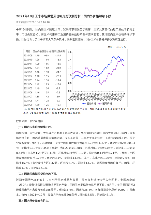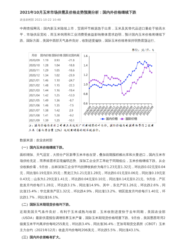 【中商产业研究院】【20211022】2021年10月玉米市场供需及价格走势预测分析-2页
