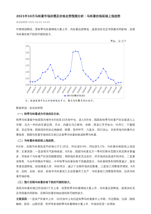 【中商产业研究院】【202110】2021年10月马铃薯市场供需及价格走势预测分析-2页