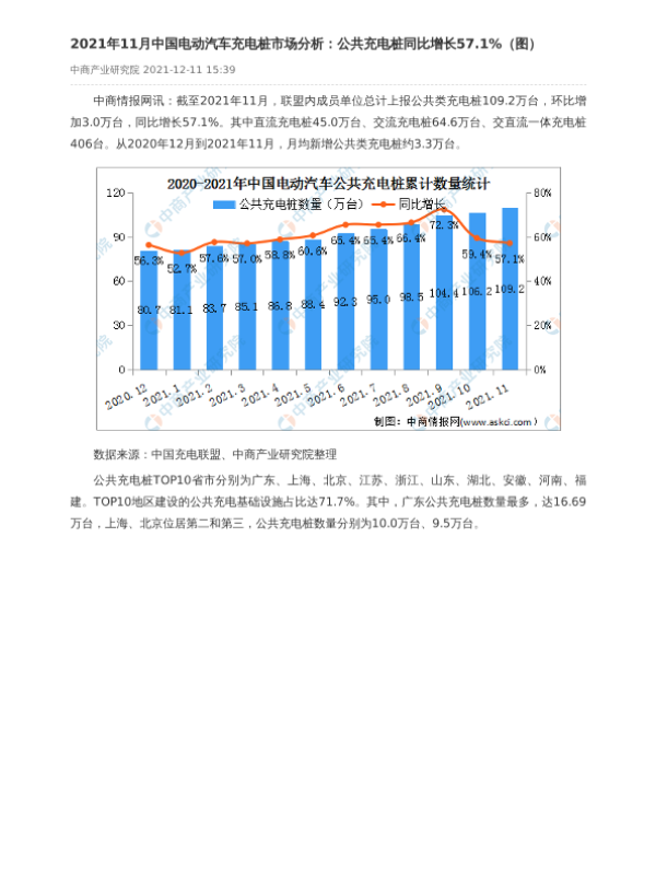 【中商产业研究院】【20211211】2021年11月中国电动汽车充电桩市场分析:公共充电桩同比增长57.1%-2页