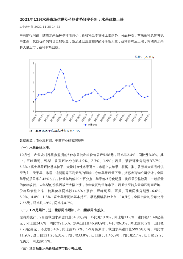 【中商产业研究院】【2021】2021年11月水果市场供需及价格走势预测分析-2页