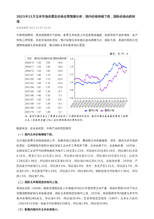 【中商产业研究院】【20211125】2021年11月玉米市场供需及价格走势预测分析-2页