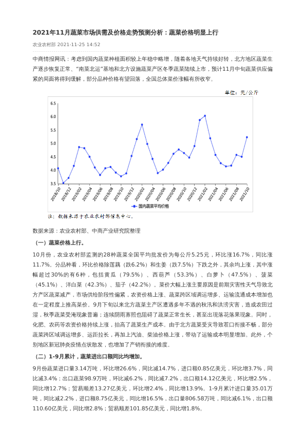 【中商产业研究院】【20211125】2021年11月蔬菜市场供需及价格走势预测分析-2页