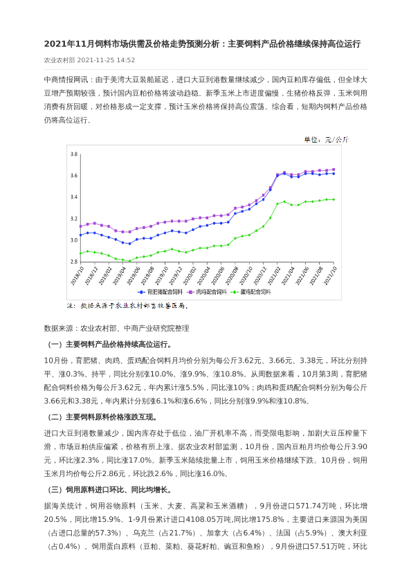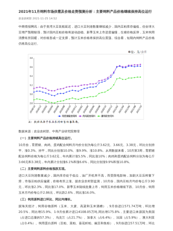 【中商产业研究院】【202111】2021年11月饲料市场供需及价格走势预测分析-2页