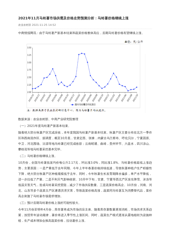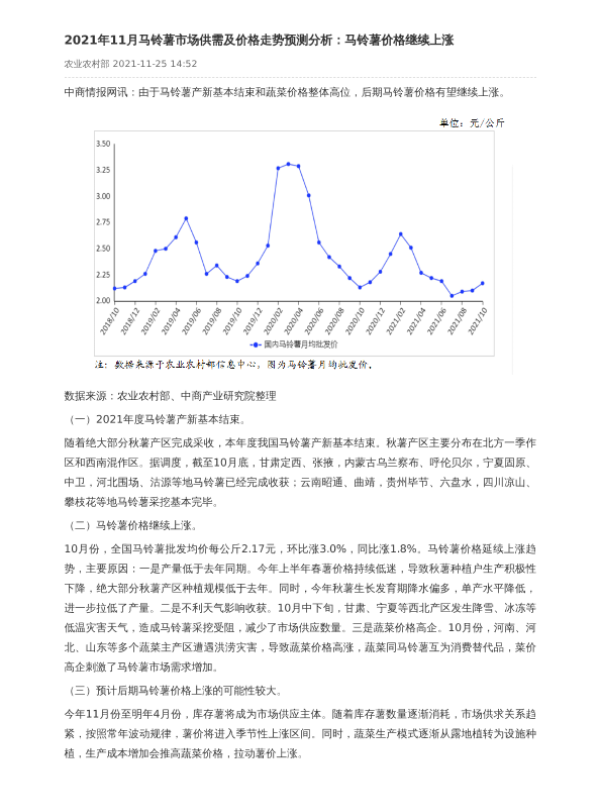【中商产业研究院】【20211125】2021年11月马铃薯市场供需及价格走势预测分析-2页