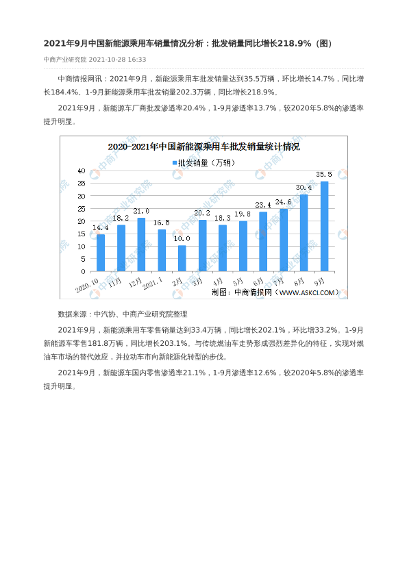 【中商产业研究院】【202109】2021年9月中国新能源乘用车销量情况分析-2页