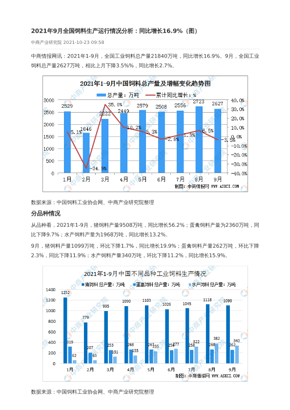 【中商产业研究院】【20211023】2021年9月全国饲料生产运行情况分析-2页
