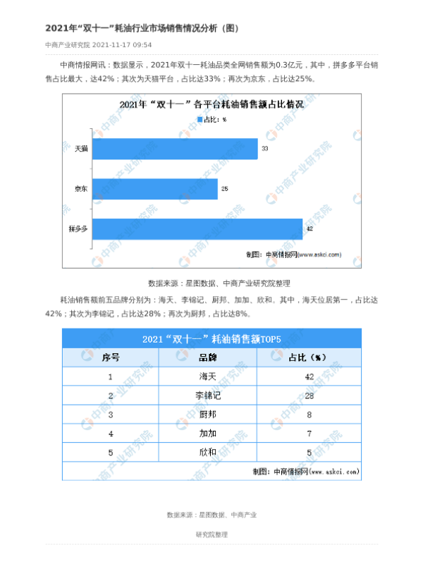 【中商产业研究院】【2021】2021年“双十一”耗油行业市场销售情况分析(图)-2页