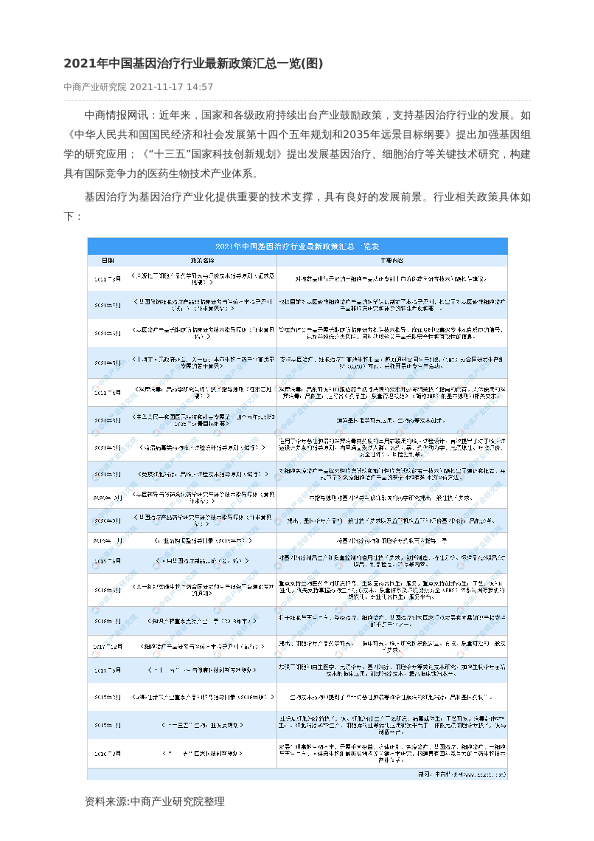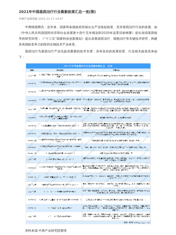 【中商产业研究院】【20211117】2021年中国基因治疗行业最新政策汇总一览(图)-2页