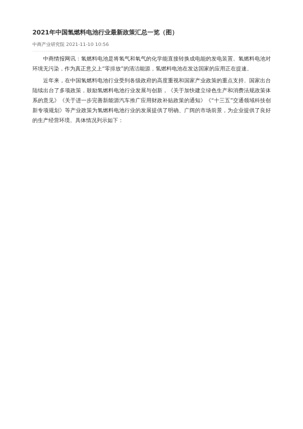 【中商产业研究院】【20211110】2021年中国氢燃料电池行业最新政策汇总一览(图)-2页