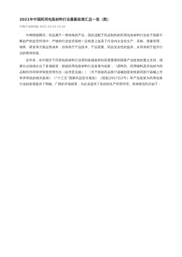 【中商产业研究院】【2021】2021年中国药用包装材料行业最新政策汇总一览-2页