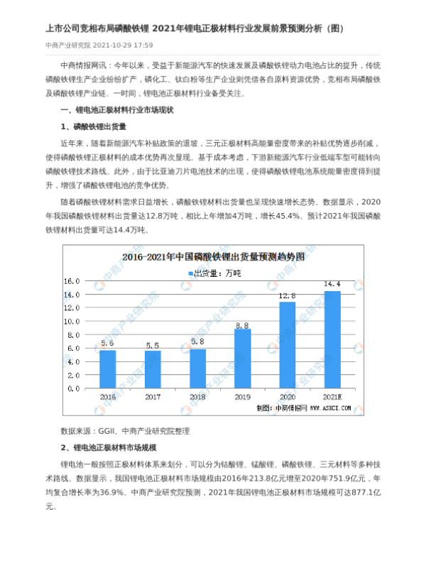 市场前景 新能源汽车 正极材料 磷酸铁锂 锂电池