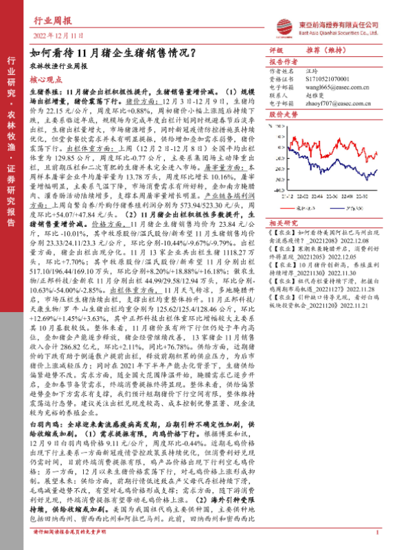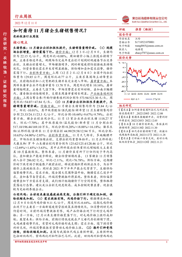 【东亚前海证券】【20221211】农林牧渔行业周报:如何看待11月猪企生猪销售情况?-19页