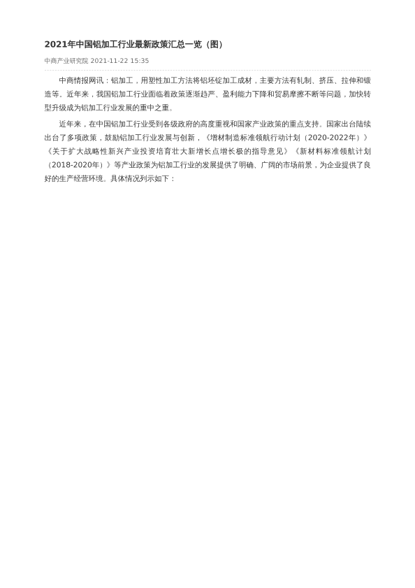 【中商产业研究院】【2021】2021年中国铝加工行业最新政策汇总一览(图)-3页