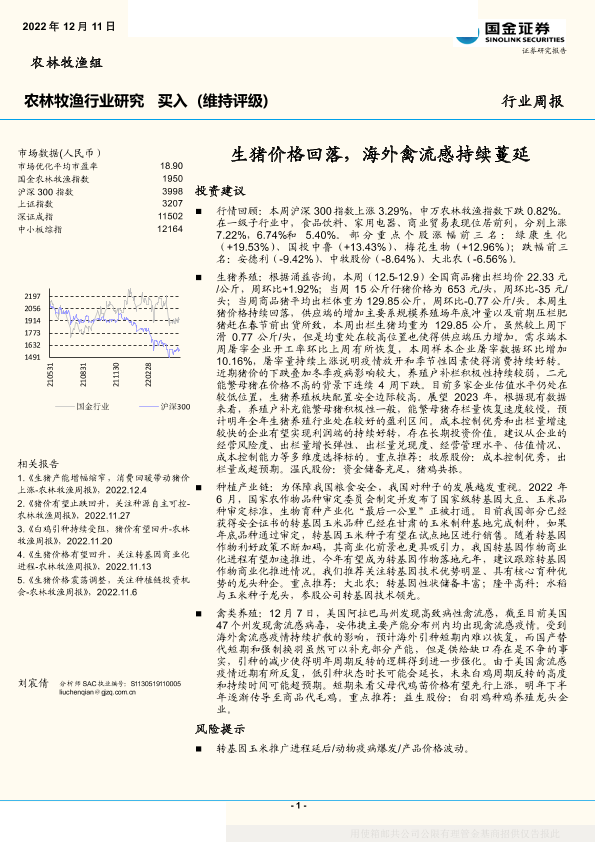 【国金证券】【20221211】农林牧渔行业周报:生猪价格回落,海外禽流感持续蔓延-15页