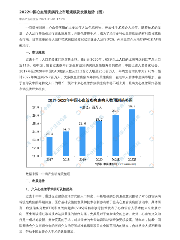 【中商产业研究院】【2022】2022中国心血管疾病行业市场规模及发展趋势-2页