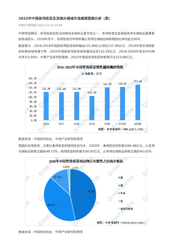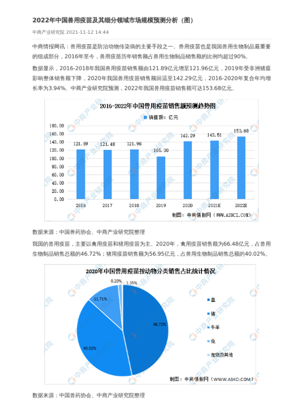 【中商产业研究院】【20211112】2022年中国兽用疫苗及其细分领域市场规模预测分析(图)-2页